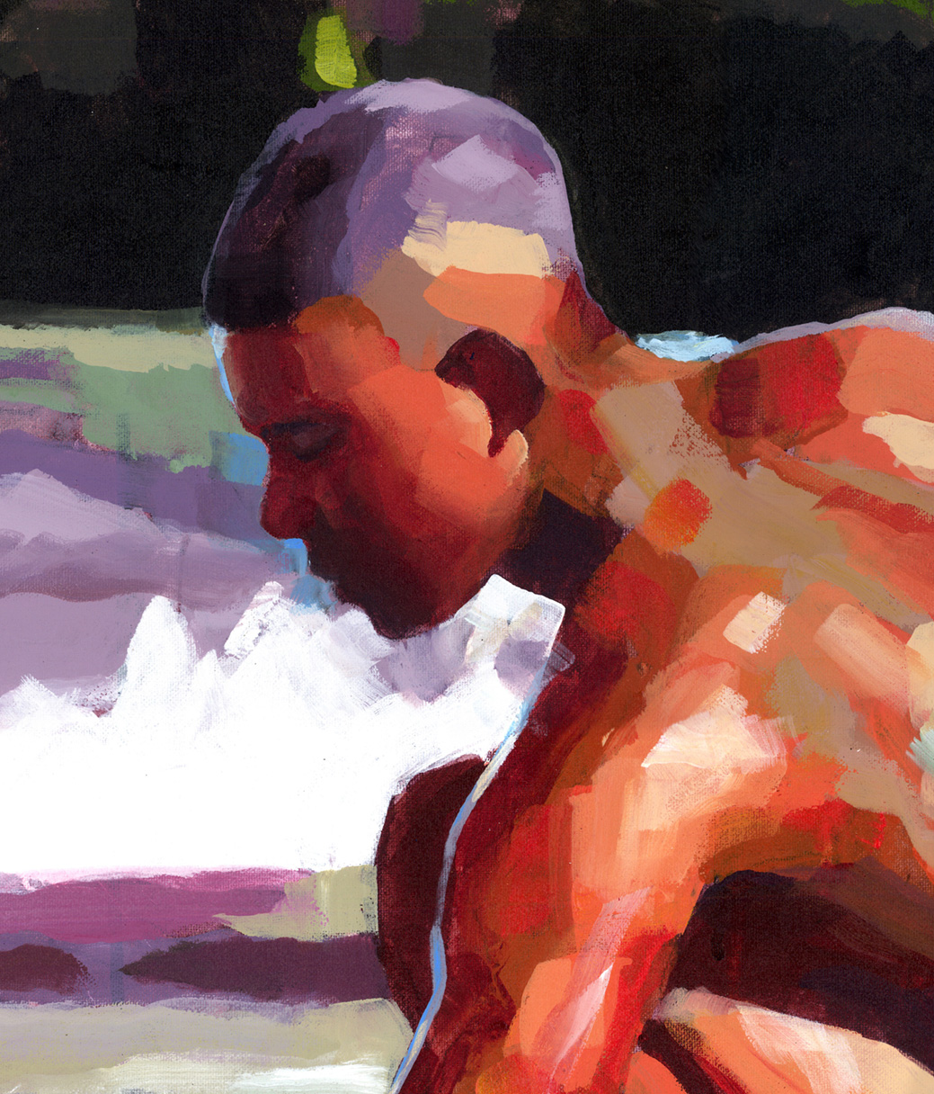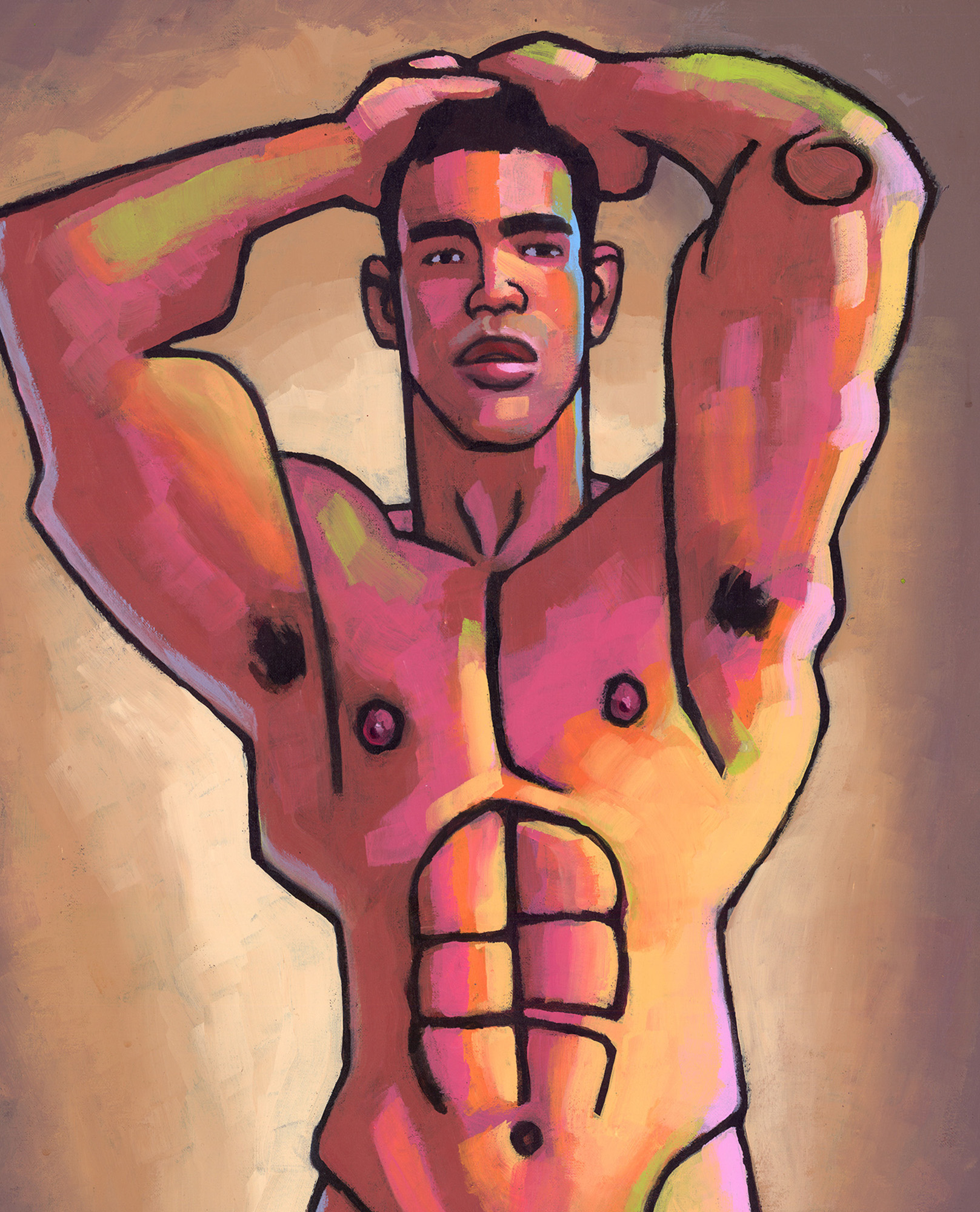These paintings and drawings represent studio work by Douglas Simonson, developed through a sustained engagement with the male figure over several decades. Some works include full nudity; uncropped images are available to registered viewers.