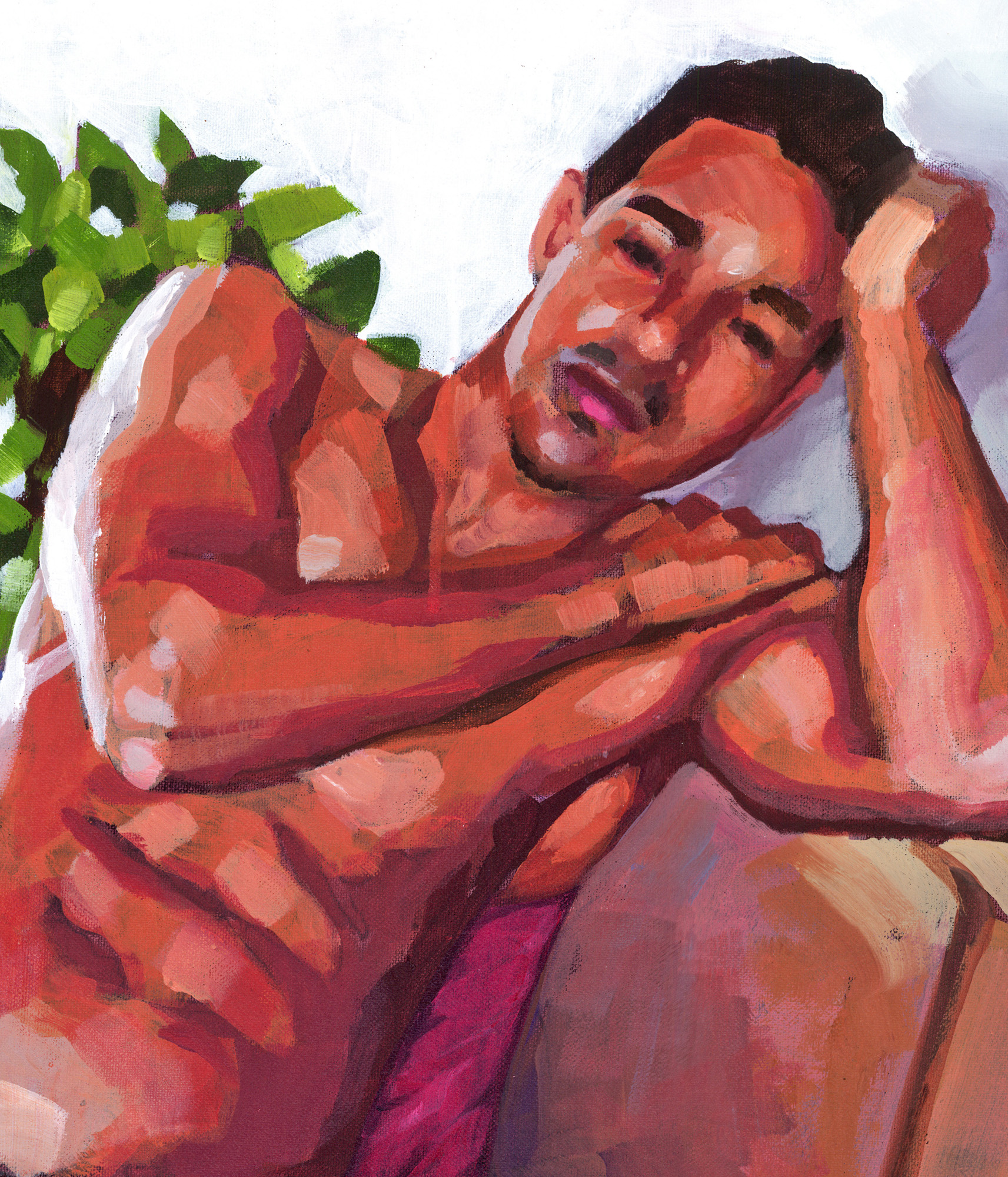 Nude young Colombian male relaxes in a Puerto Vallarta apartment.