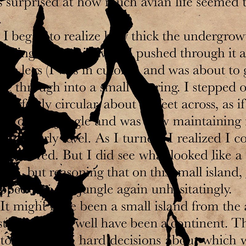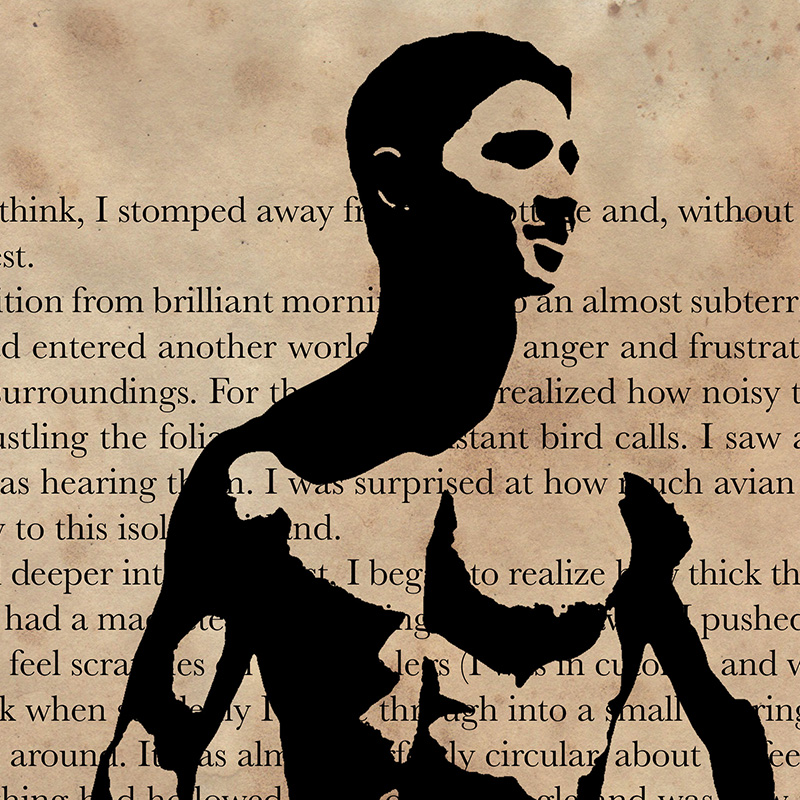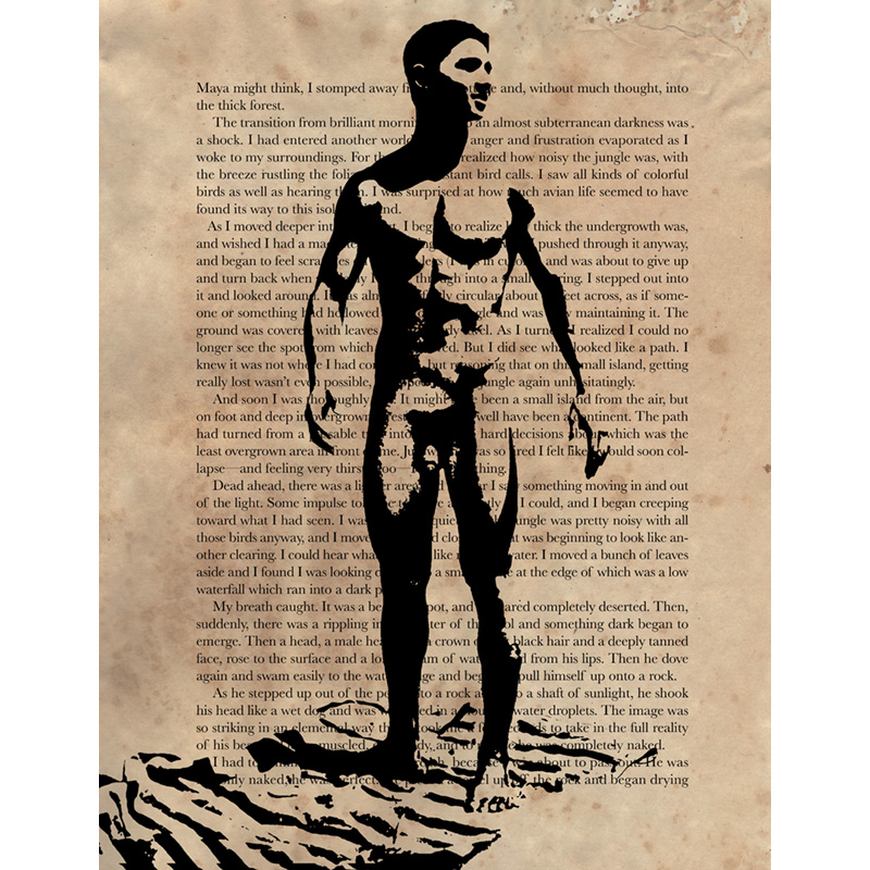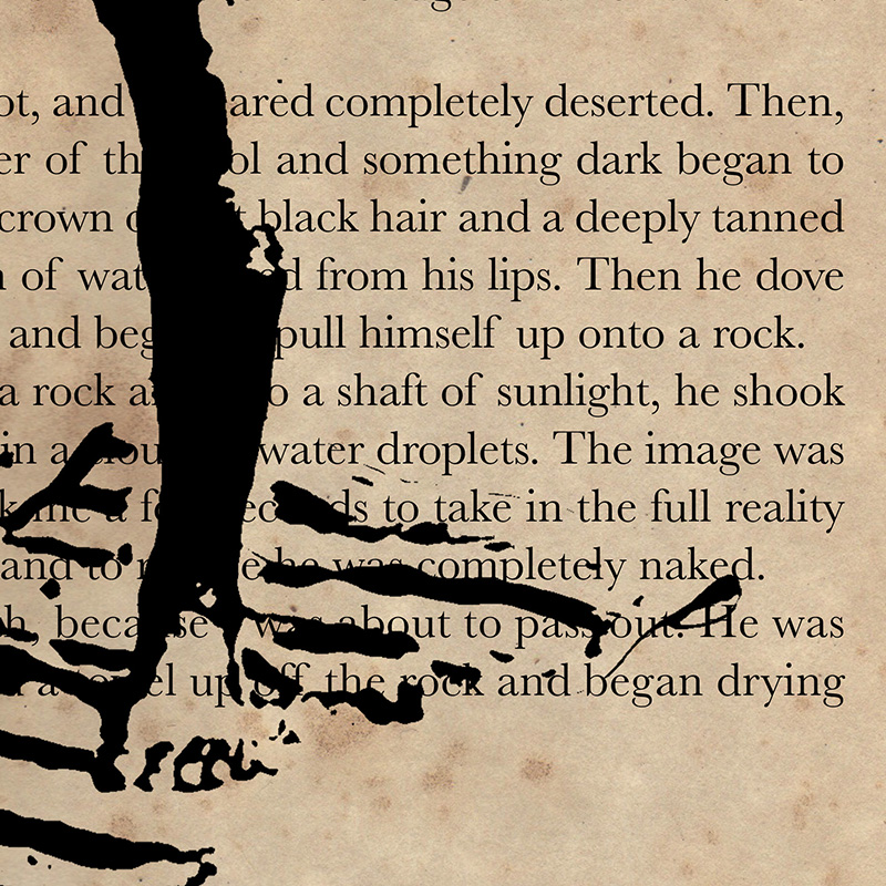 Standing nude of Hawaiian male overlaid on text from vintage gay novel.
