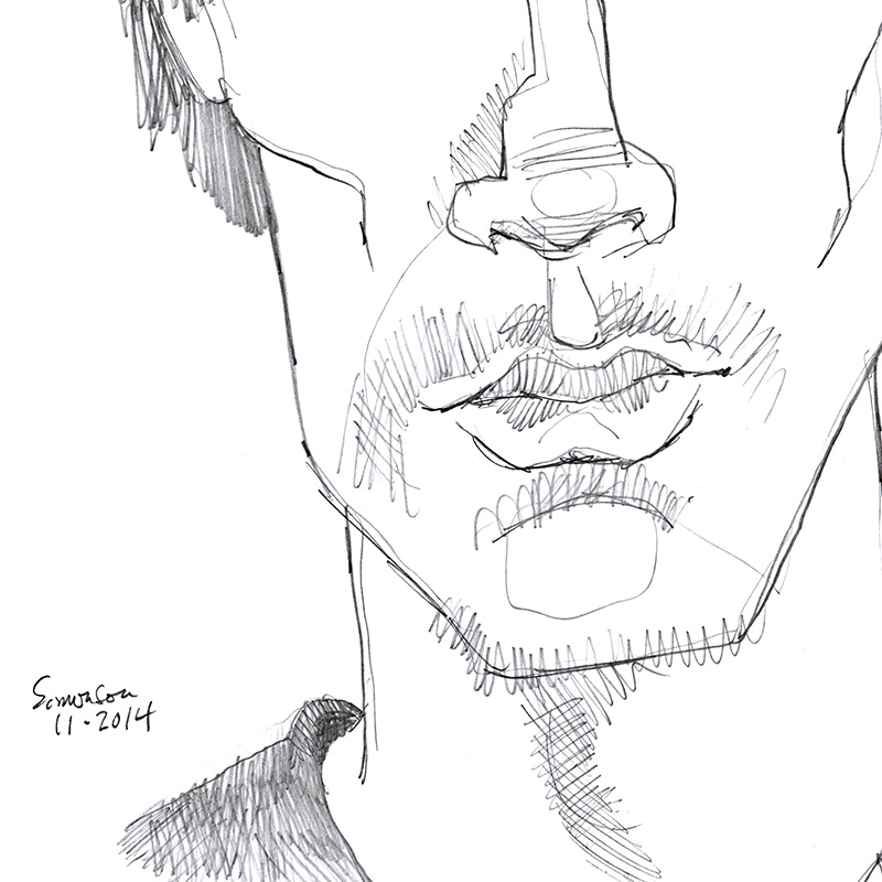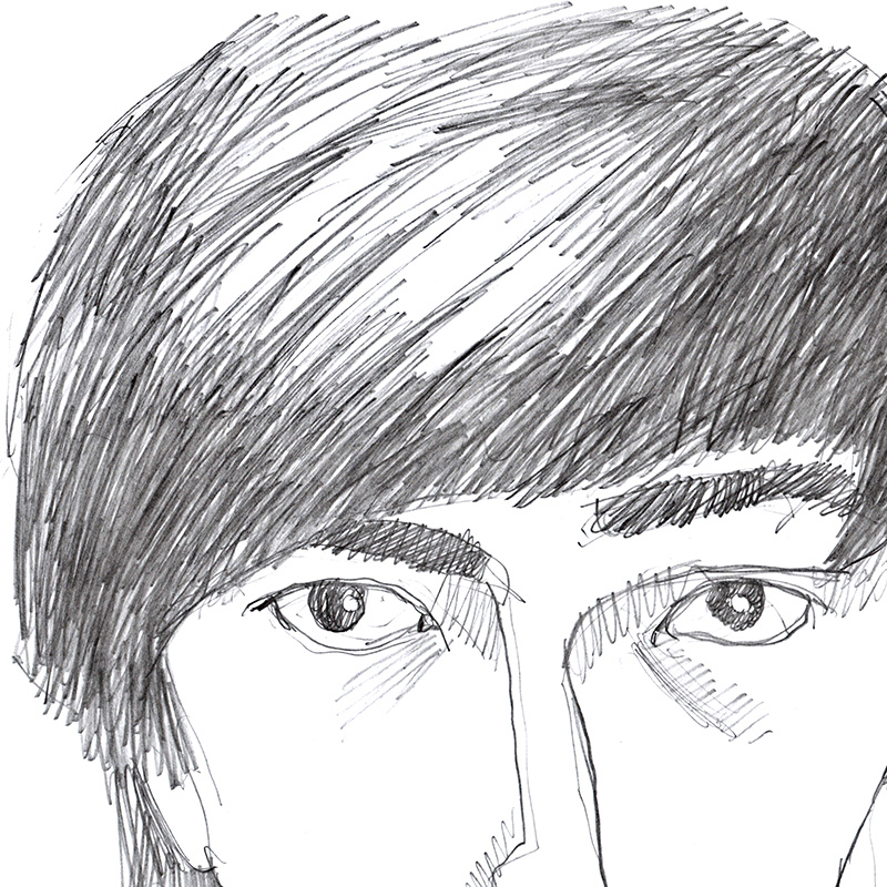 Expressionist portrait of young Asian male with longish bangs.