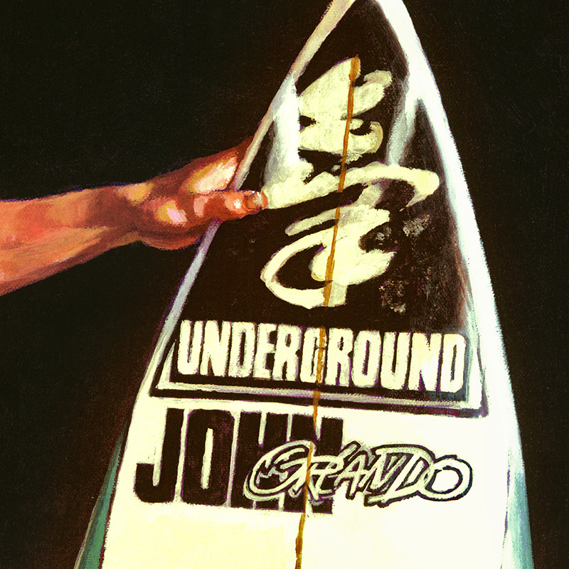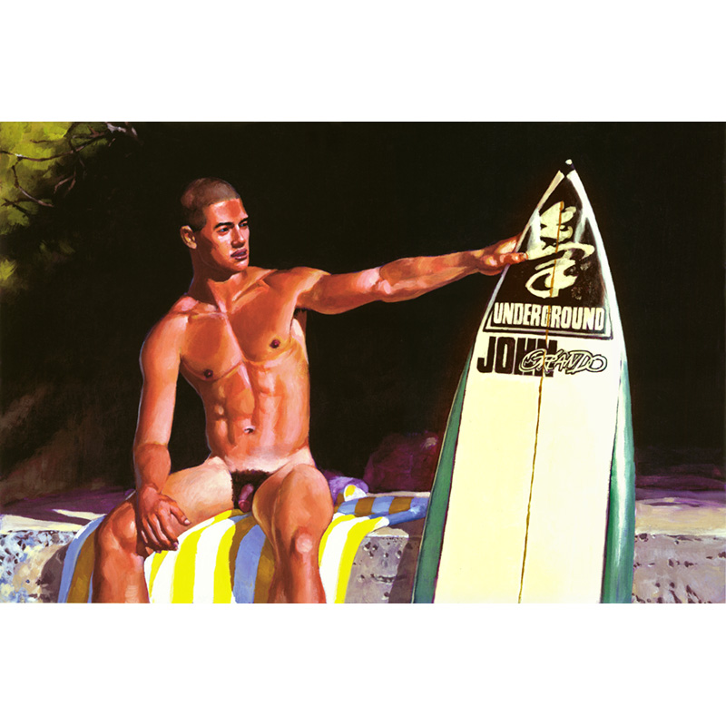 Seated part-Hawaiian male with surfboard.