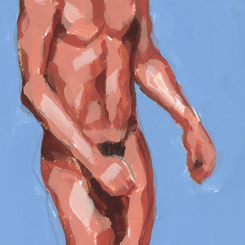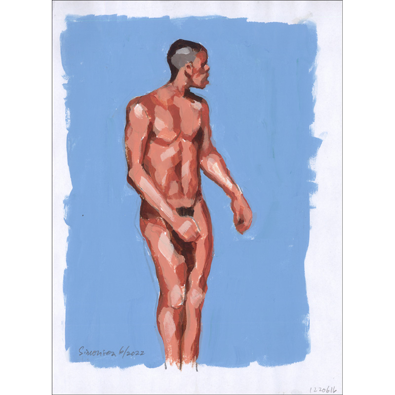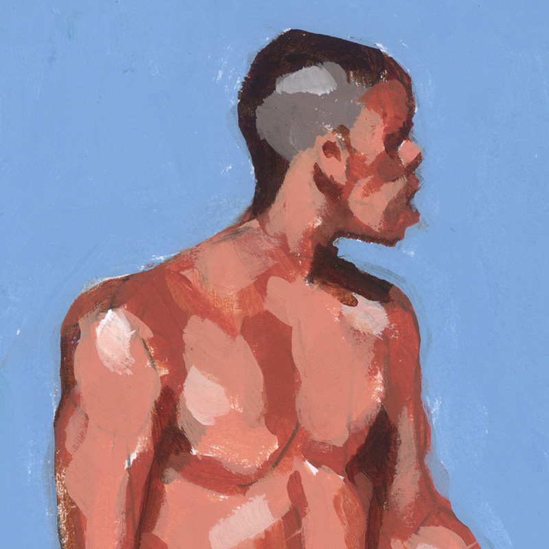 Black Male Nude on Blue Background