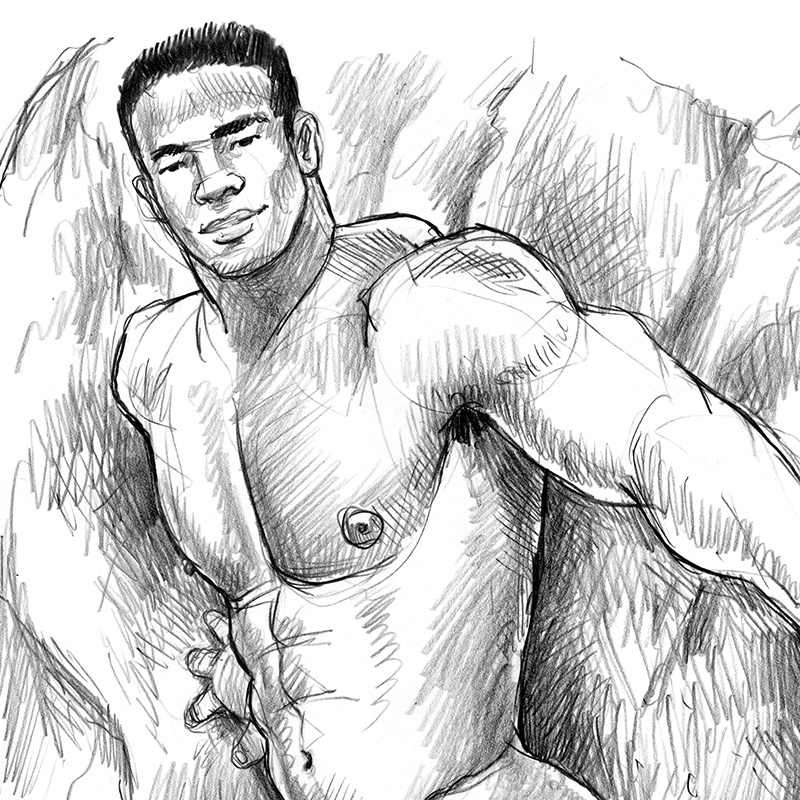 Big Brazilian nude leaning against huge rock.