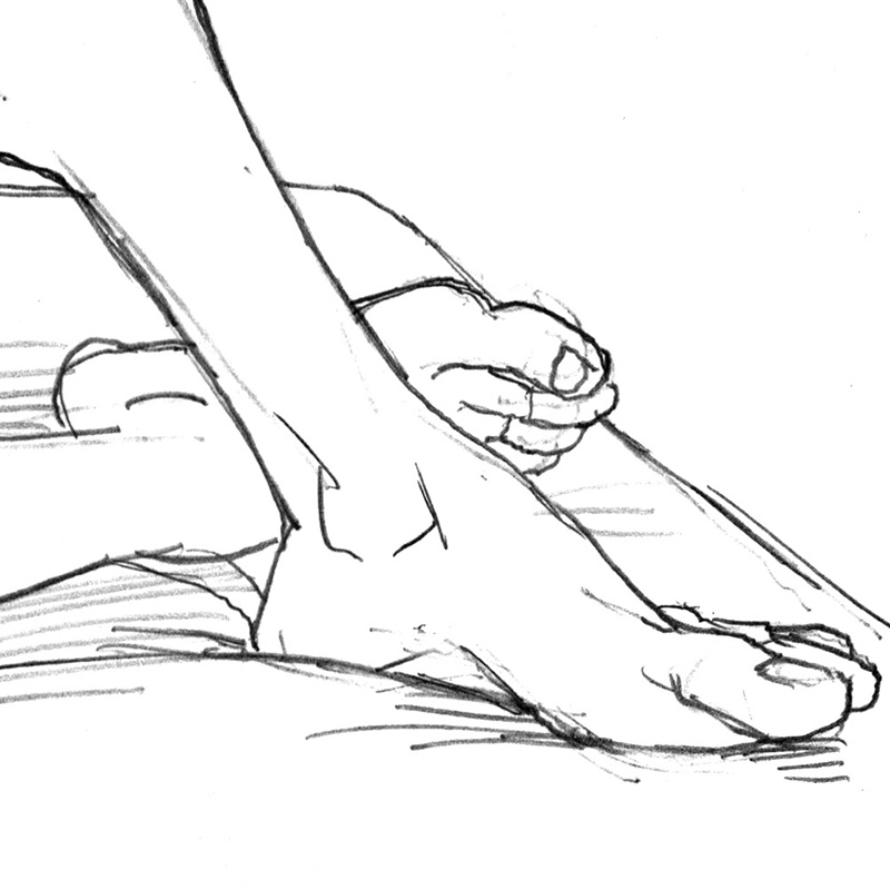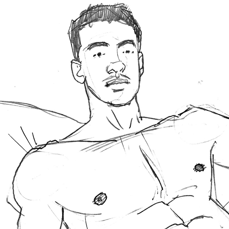 Nude Colombian male poses on bed (This sketch is one of the step-by-step demonstrations in the book Drawing the Male Nude by Douglas Simonson).