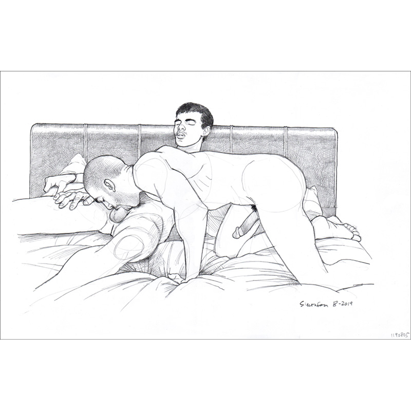 Muscular guy applies his lips to his younger partner’s genitalia.
