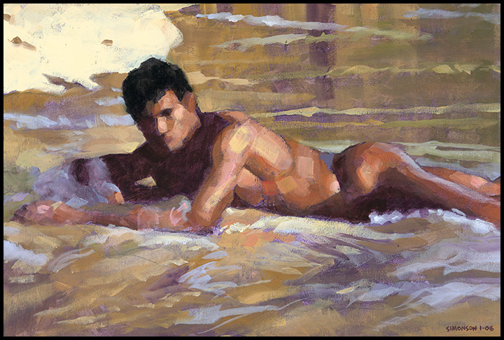 Nude Brazlian male lies in shorebreak near Angra dos Reis