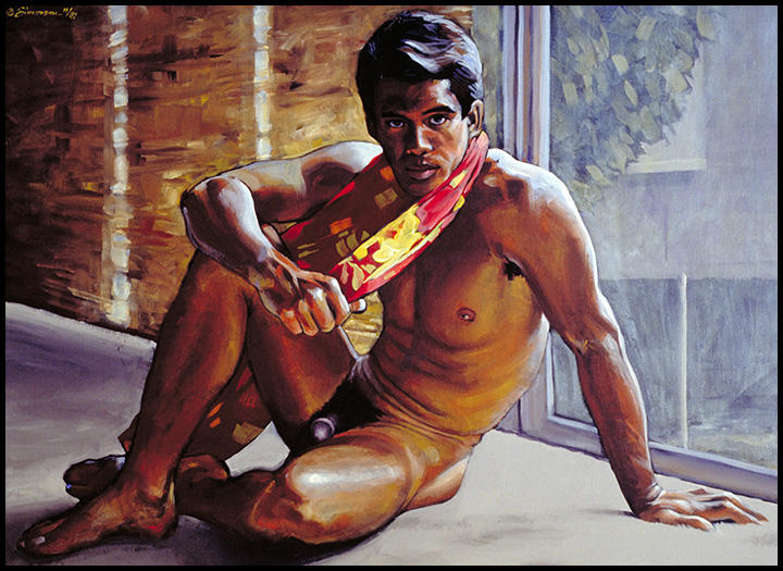 Filipino-Hawaiian male poses nude in afternoon light in a cottage near Diamond Head