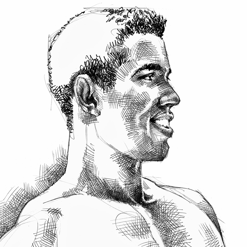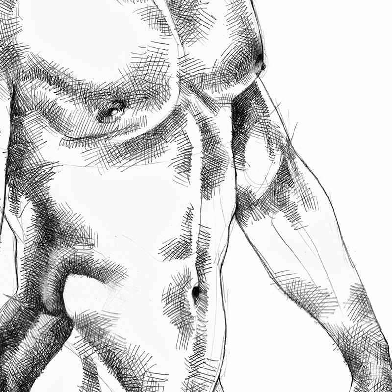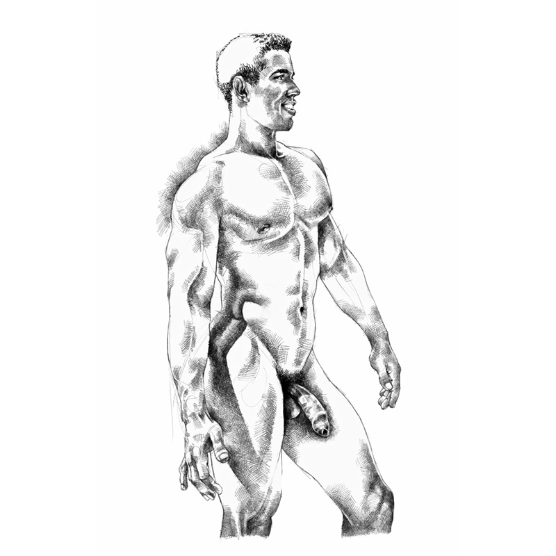 Muscular black Brazilian with semi-erection.