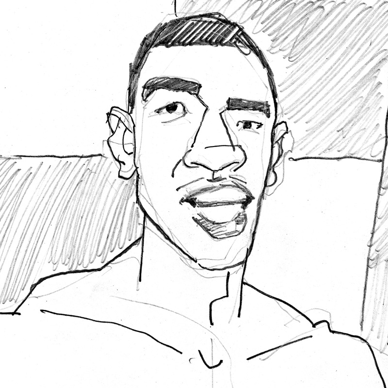 Eric Holding Bottle of Shampoo