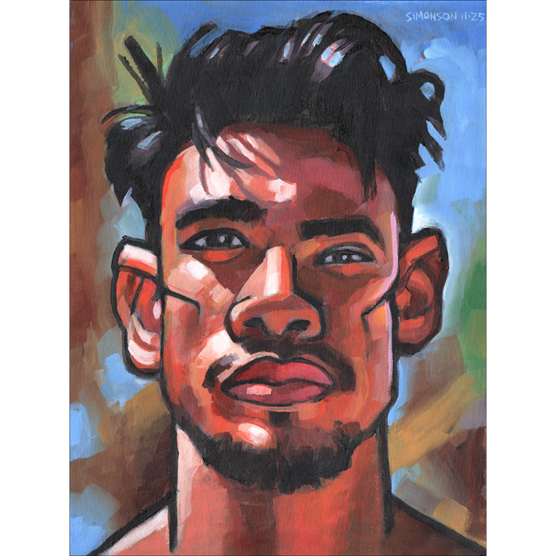 Expressionist portrait of Asian male.
