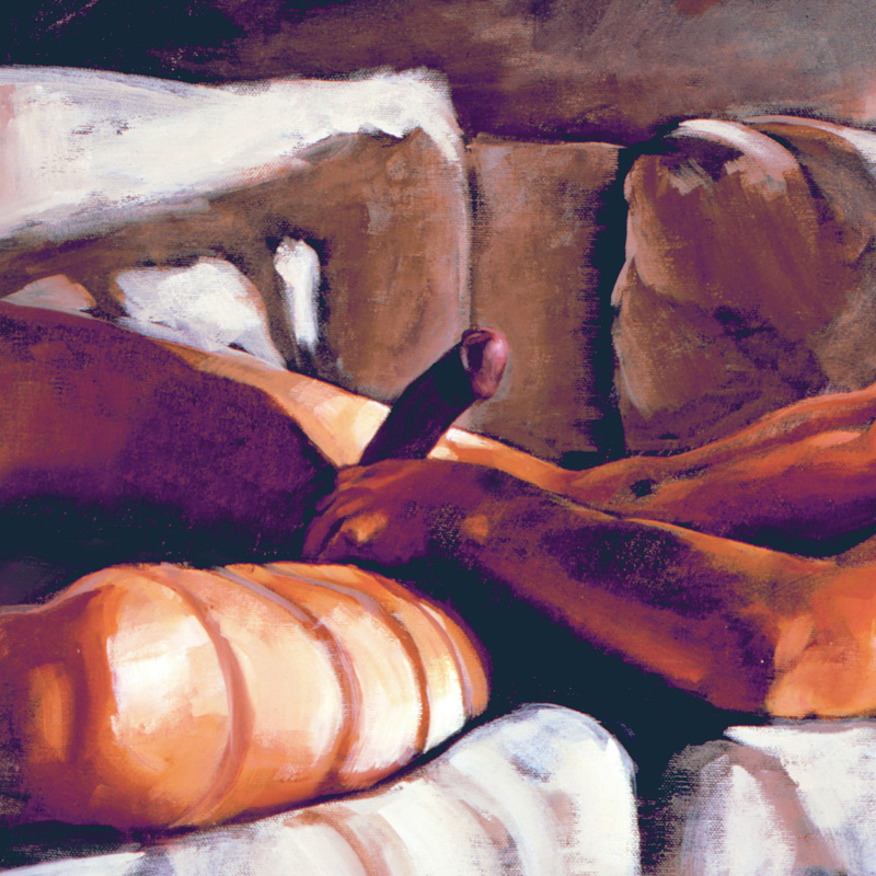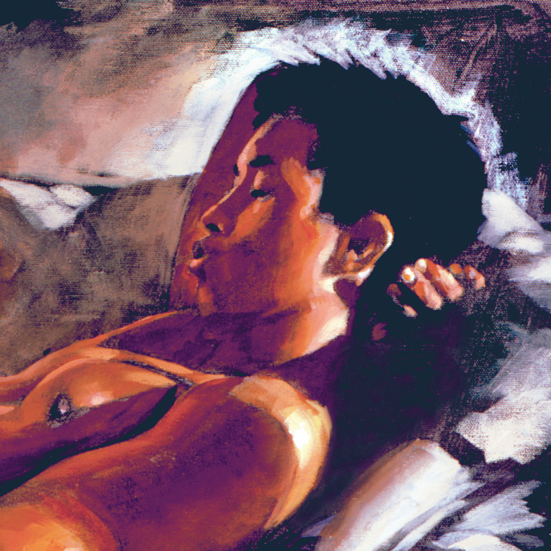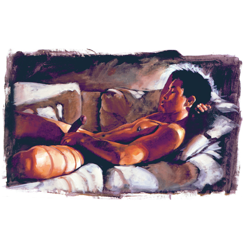Reclining erect male in late-afternoon light.