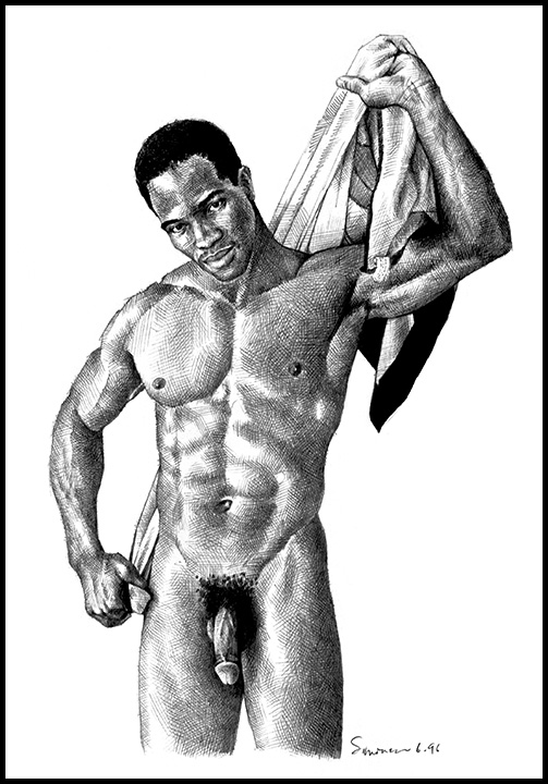 Muscular black frontal nude toweling off