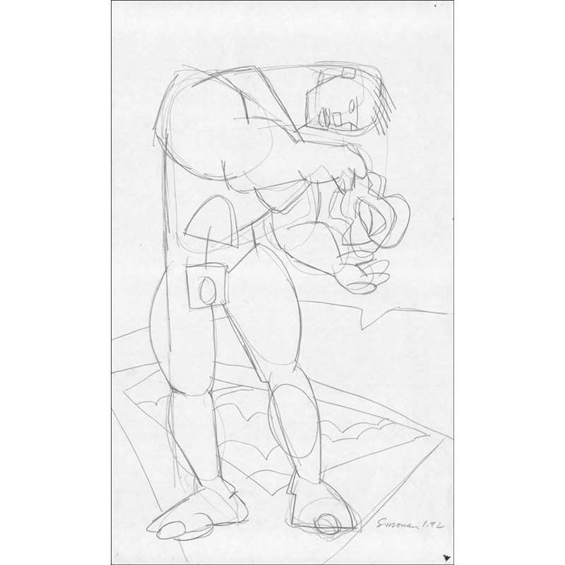 Stylized muscular nude shaking sand fm trunks. Study for painting.