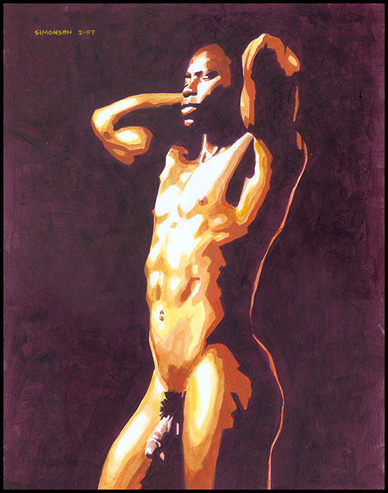 Dramatically lighted standing black male nude
