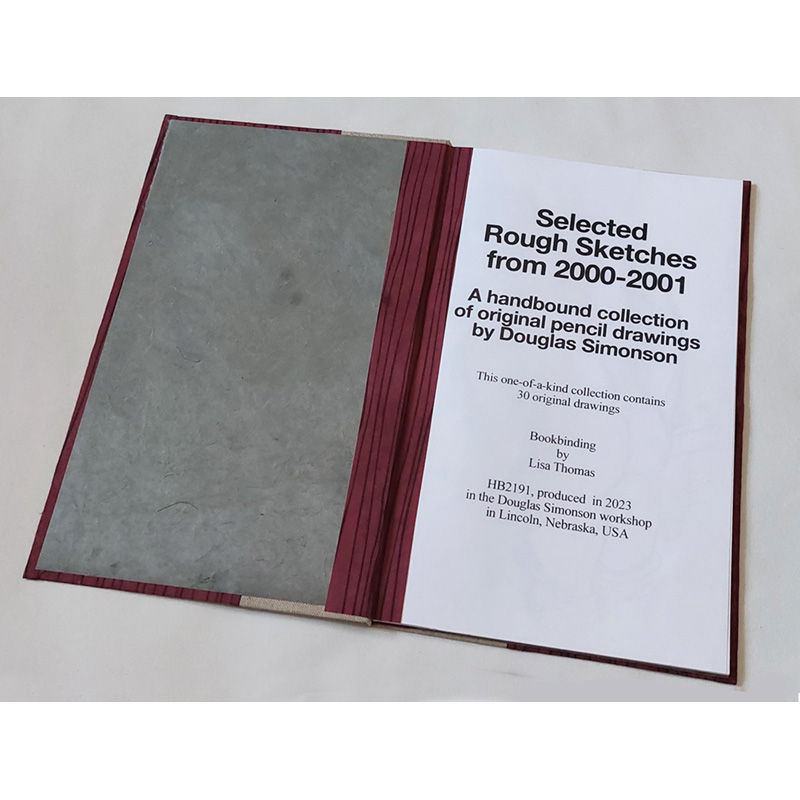 Handbound book containing 30 Simonson sketches from 2000-2001.