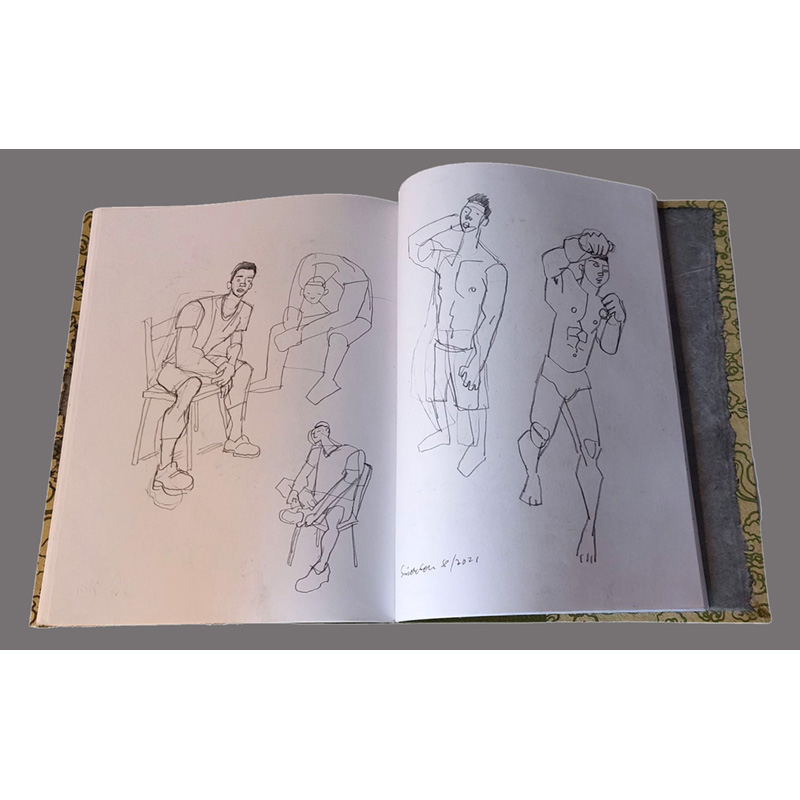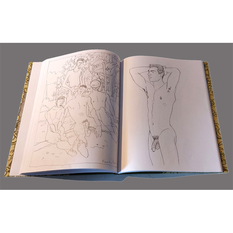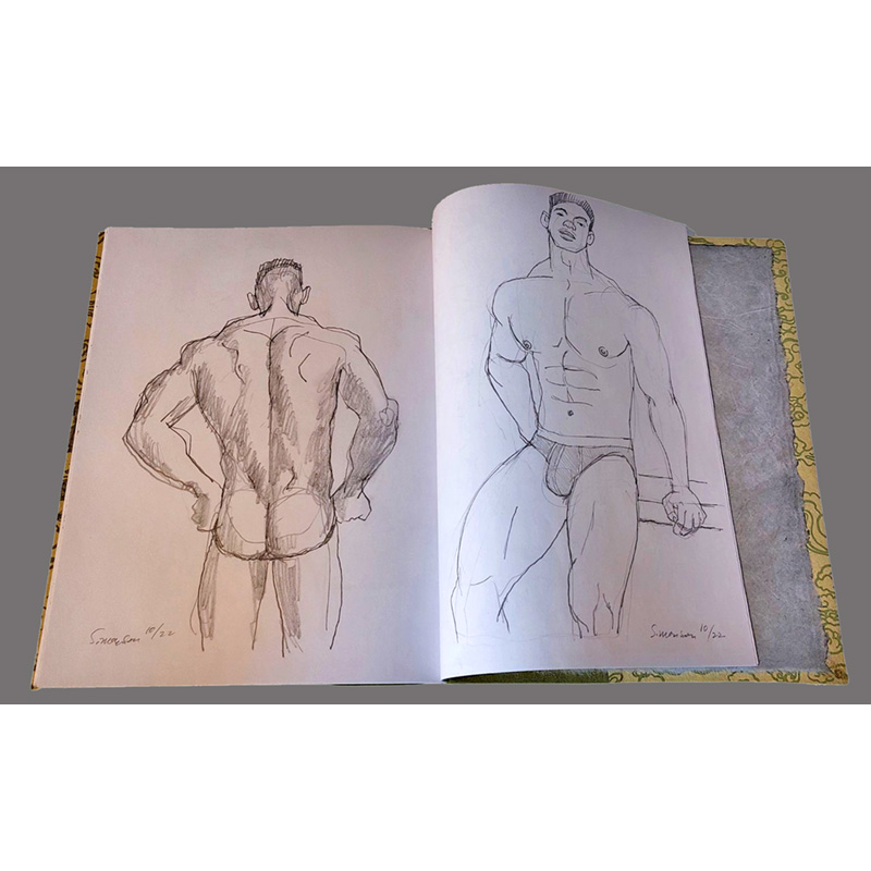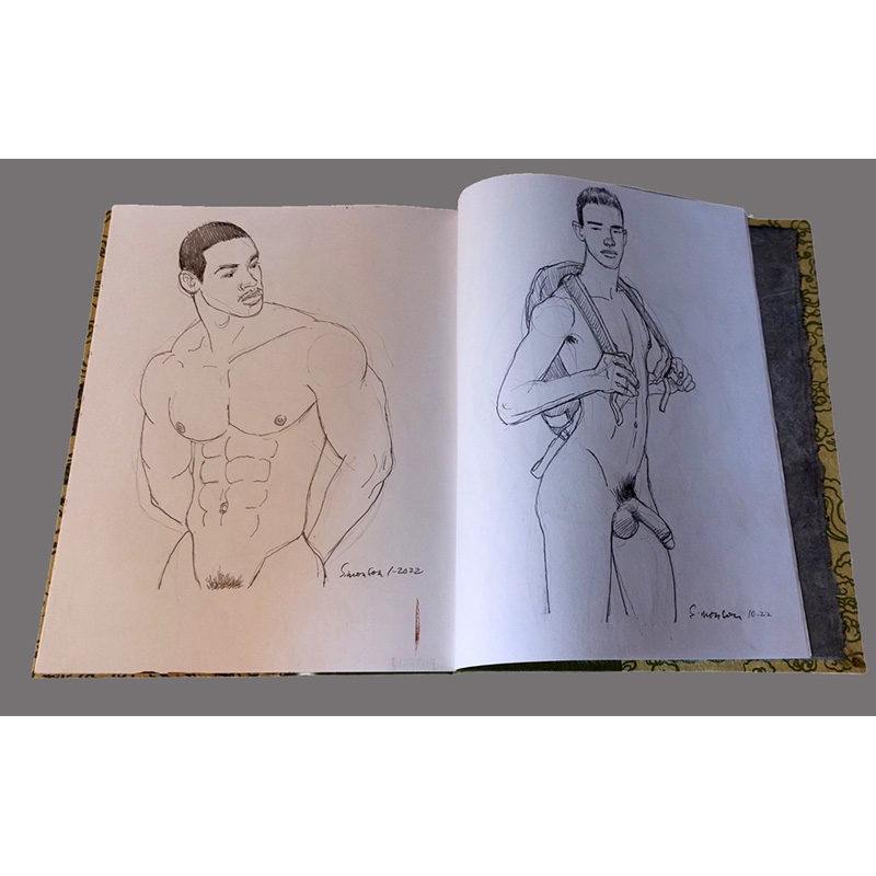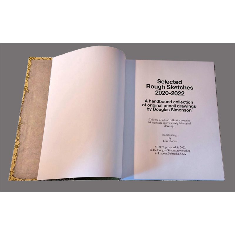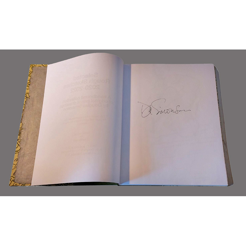 Handbound book containing approx. 90 pages with 80 original signed drawings from the period 2020 through 2022. This is a one-of-a-kind collector’s item containing all original art.