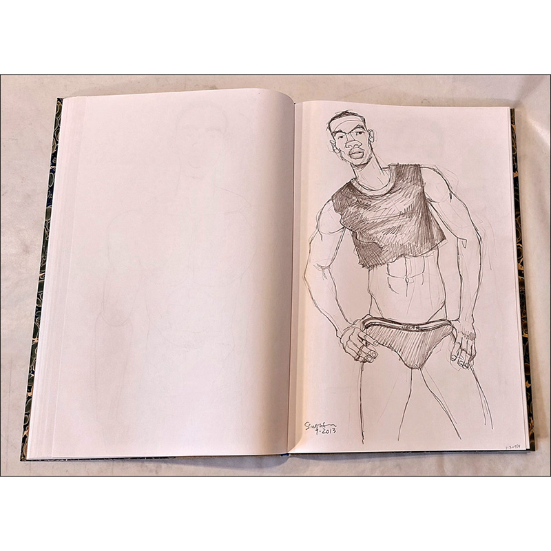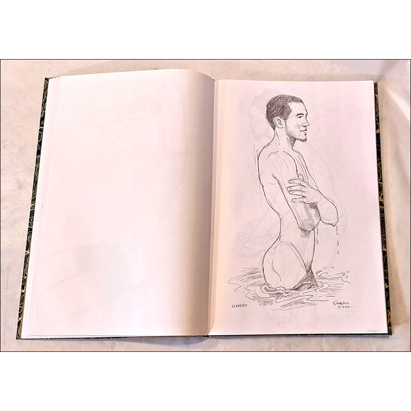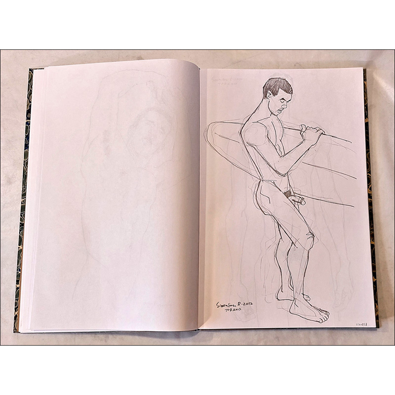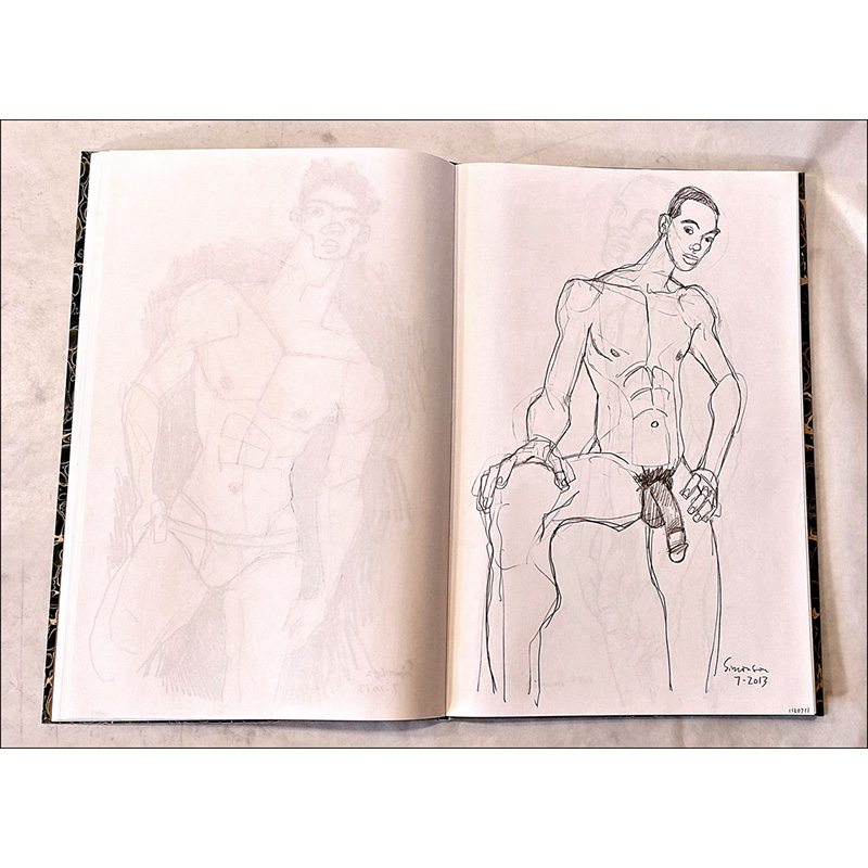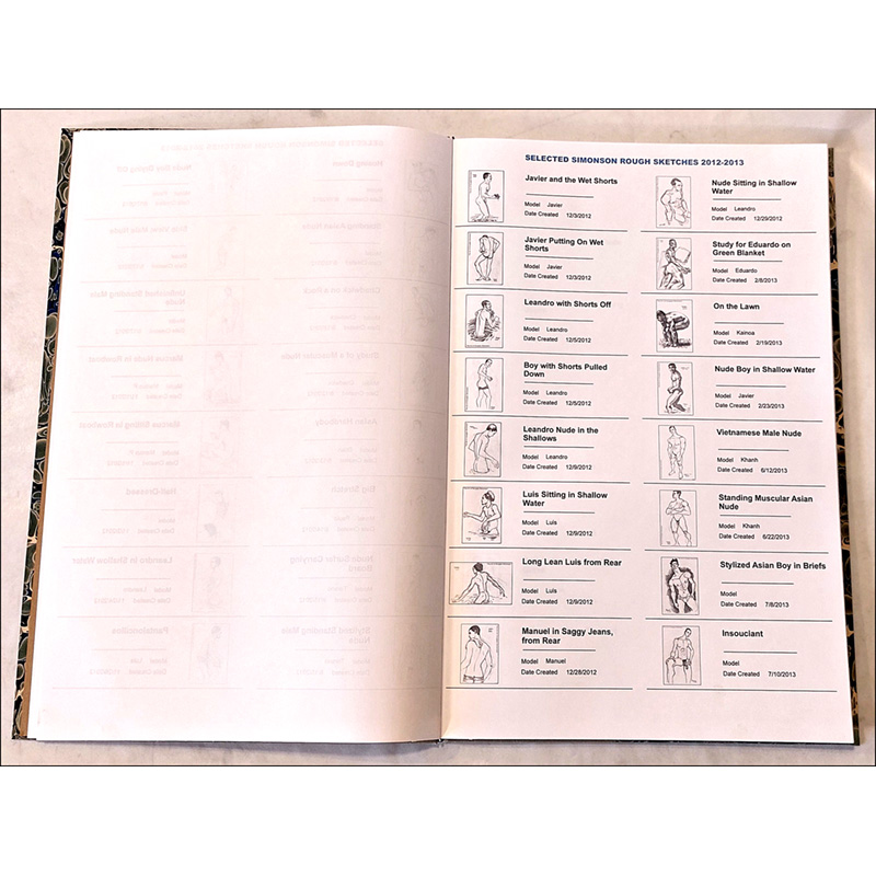 This luxurious oversize (11″x17″) handbound book contains 40 original drawings of beautiful men by Douglas Simonson..