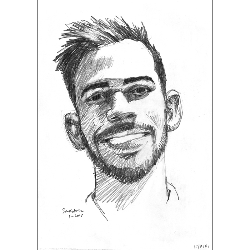 Portrait of young Brazilian male with wide grin.
