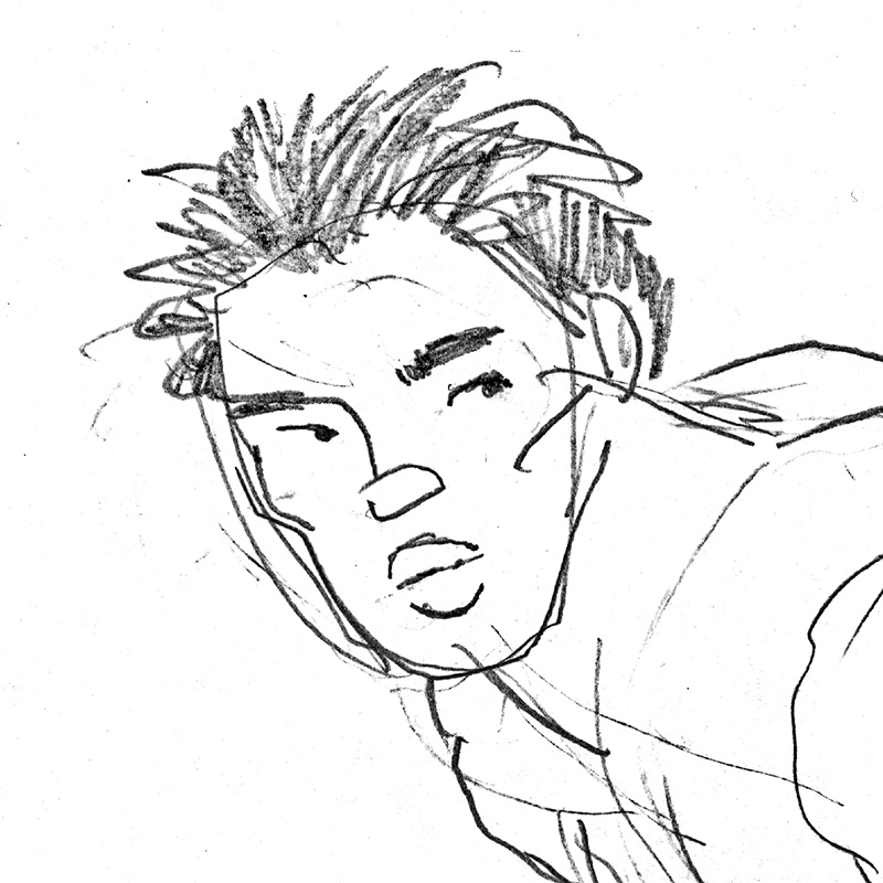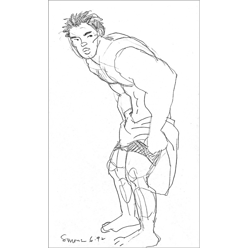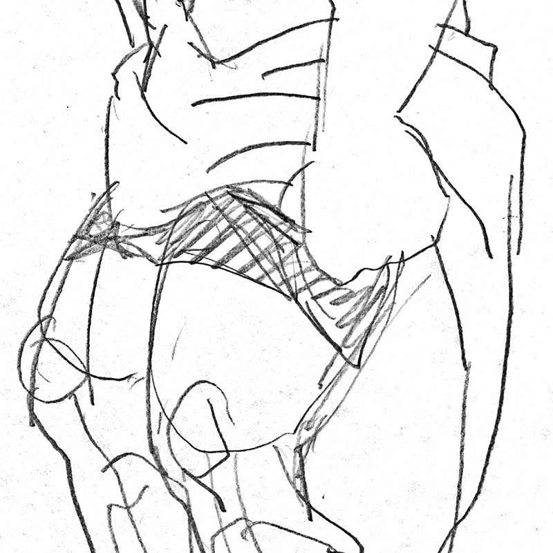 Quick sketch: Boy changing trunks under towel.