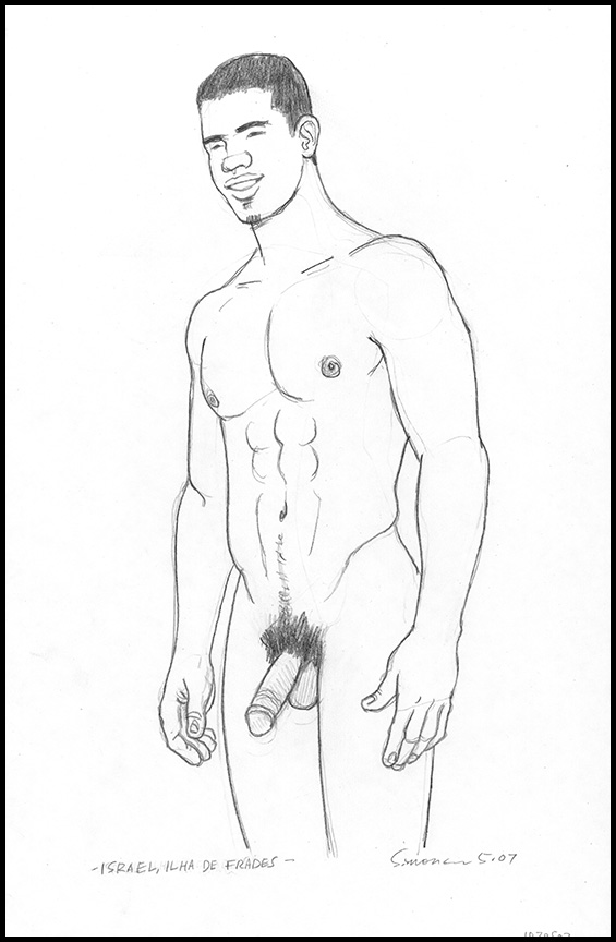 Smiling standing male nude, arms at sides