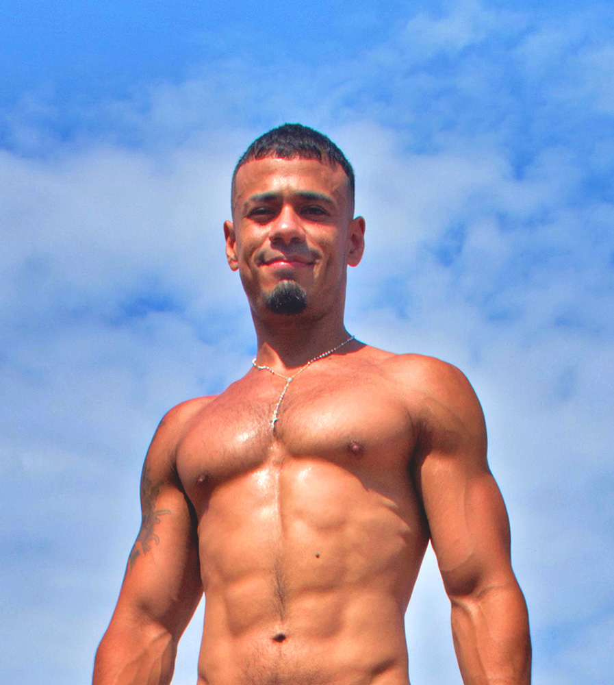 Muscular young Venezuelan stands nude on a Mexican roof.