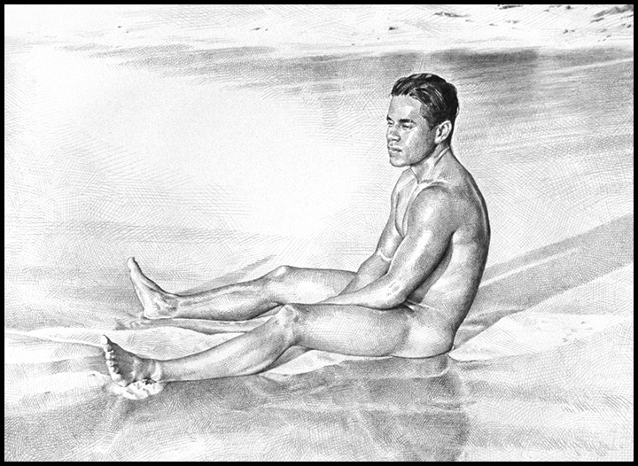 Jonny posed for me at Diamond Head Beach for this crosshatched pencil drawing