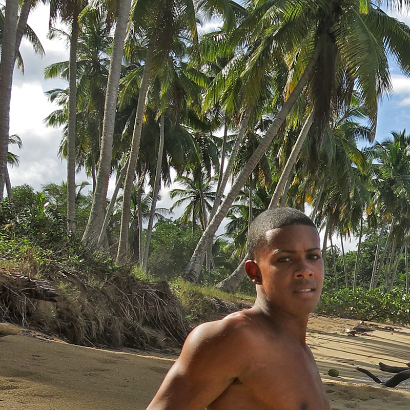 Lean Dominican boy sunning himself at a deserted beach.