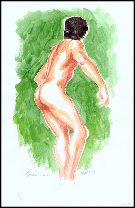 Rear nude of athletic male about to jump