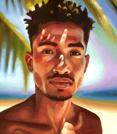 Portrait of handsome young part-Asian Brazilian at the beach.