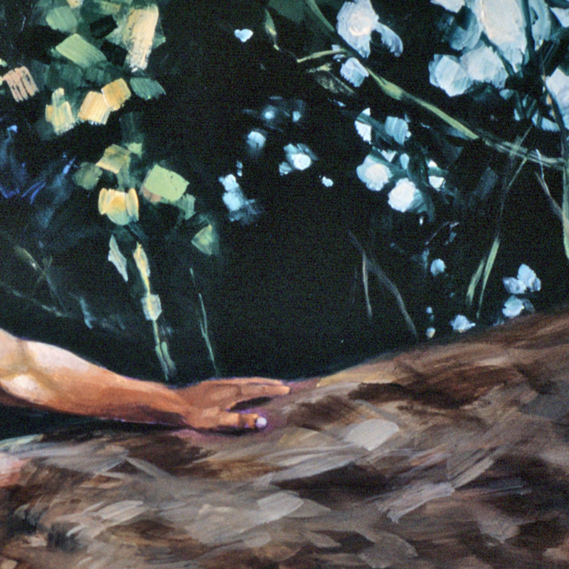 Young nude Thai male poses with lei in Hawaiian jungle near Honolulu.