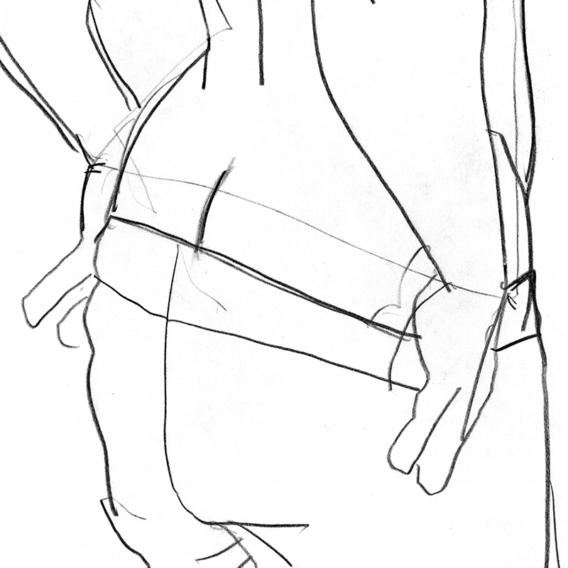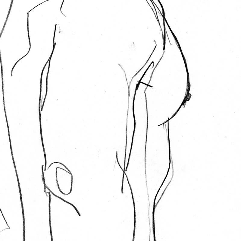Rear of surfer looking sideways lowering shorts.