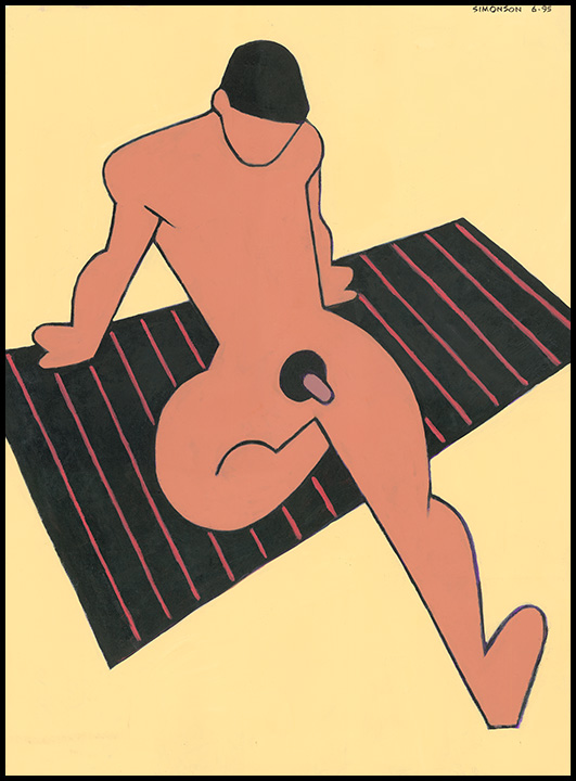 Stylized male nude on beach towel