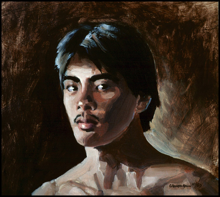 Acrylic portrait of young Filipino-Hawaiian male on brown background