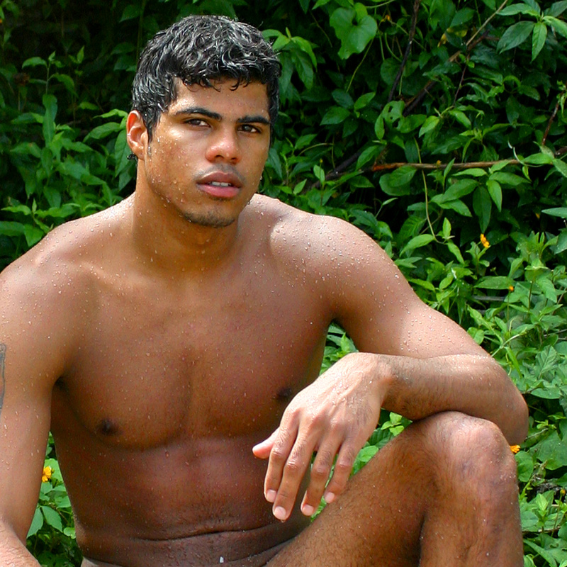 Two Brazilian nudes posing at jungle’s edge.