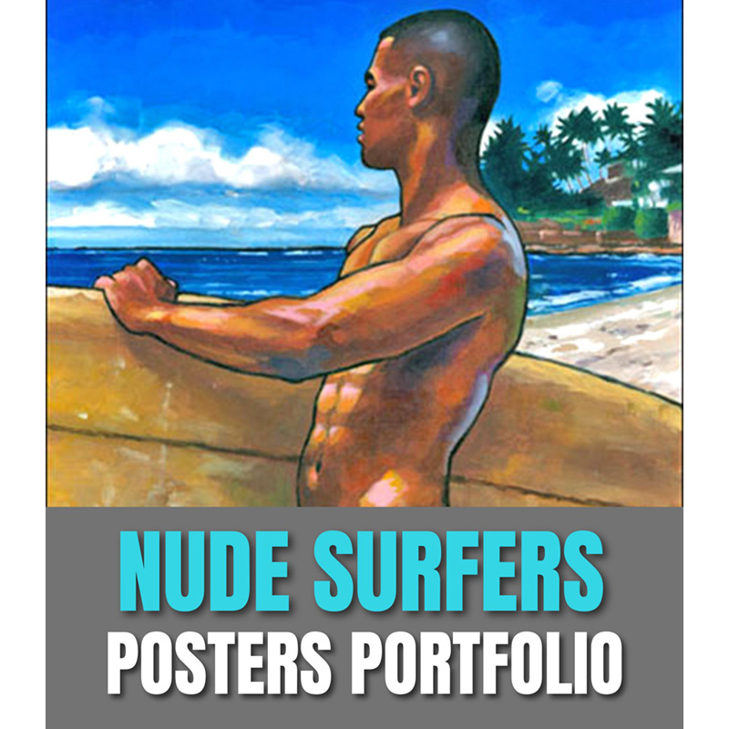 Posters portfolio: 5 posters of nude male surfers (choose signed or unsigned option).