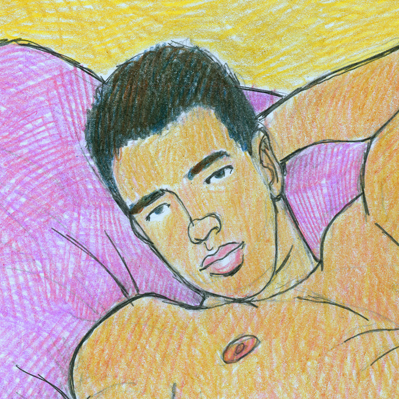 Reclining male nude with erection.
