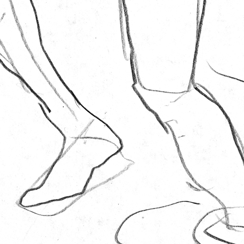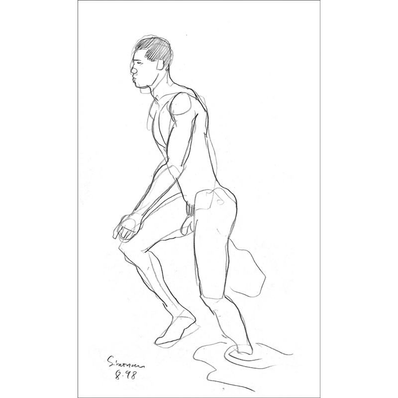 Loosely drawn male figure walking to left.