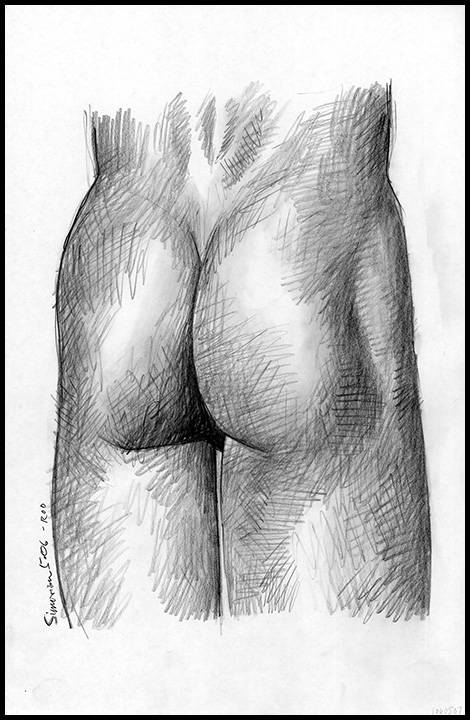 Rear nude, closeup view of male buttocks