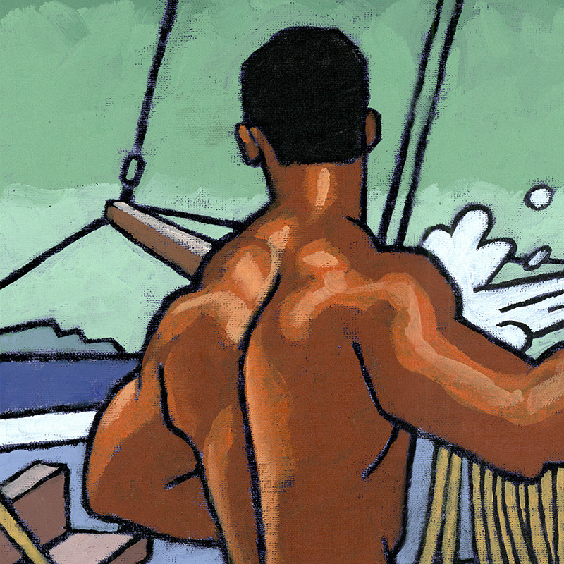Nude Brazilian sailors on deck.