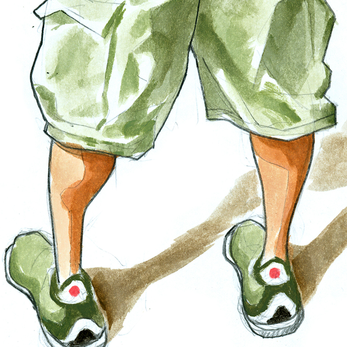 Shirtless boy from rear, saggy shorts riding low.