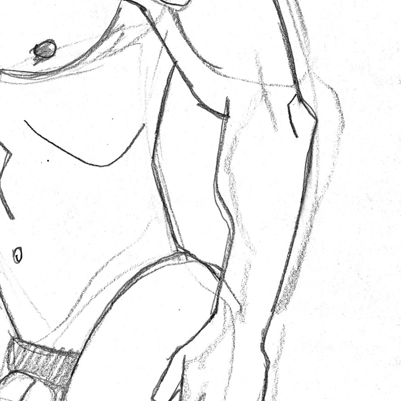 NOTE: This drawing was used as a reference for a painting, and in the process collected a small paint smear on the lower left.
