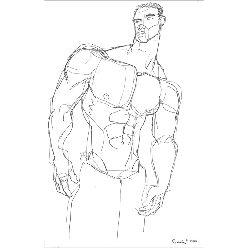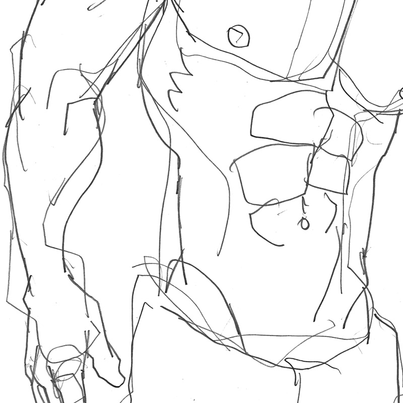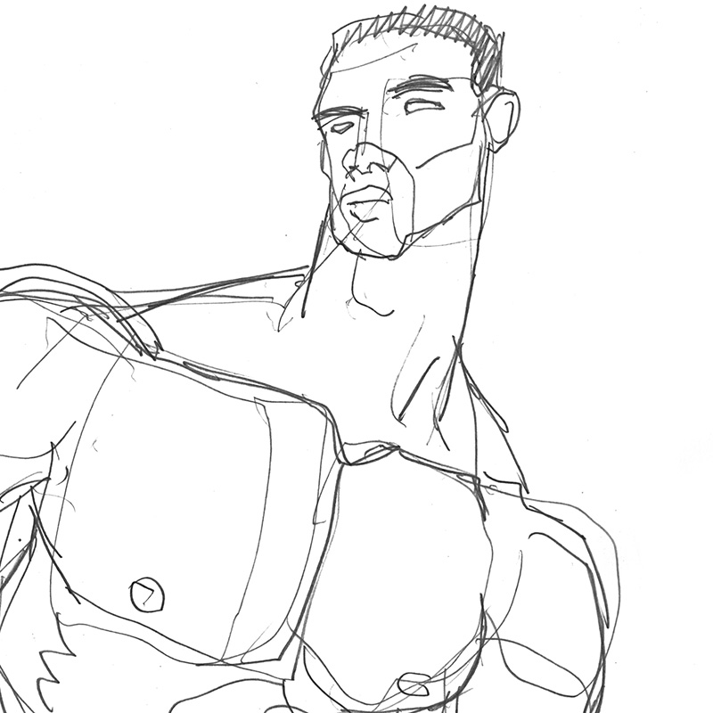 Sketch of muscular male wearing only a towel.