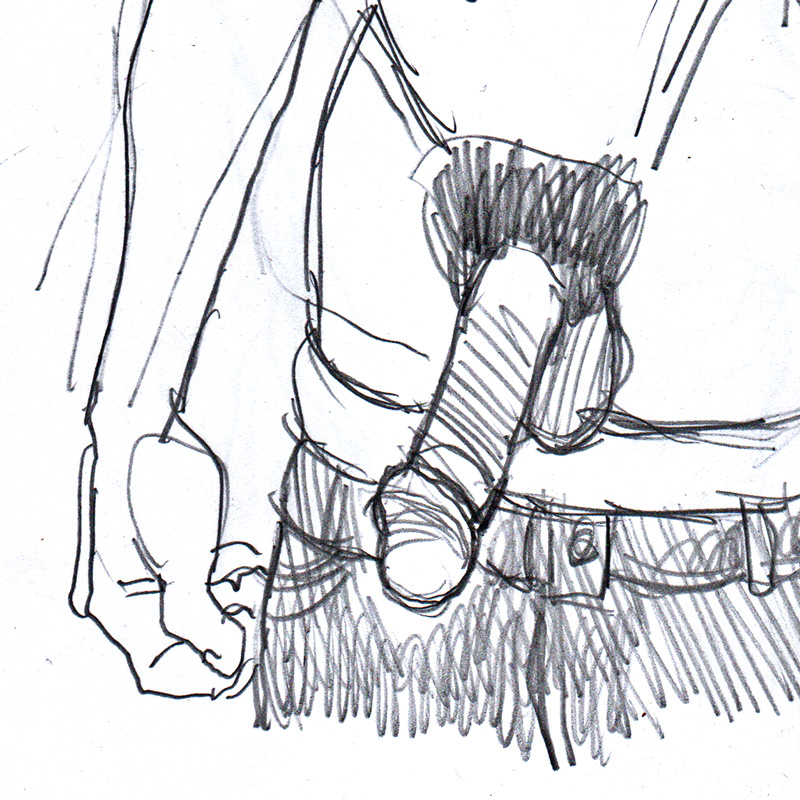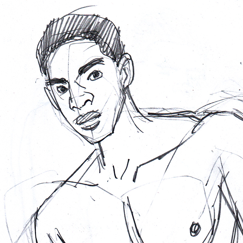 Lean young Black man with pants pulled down to show his large member.