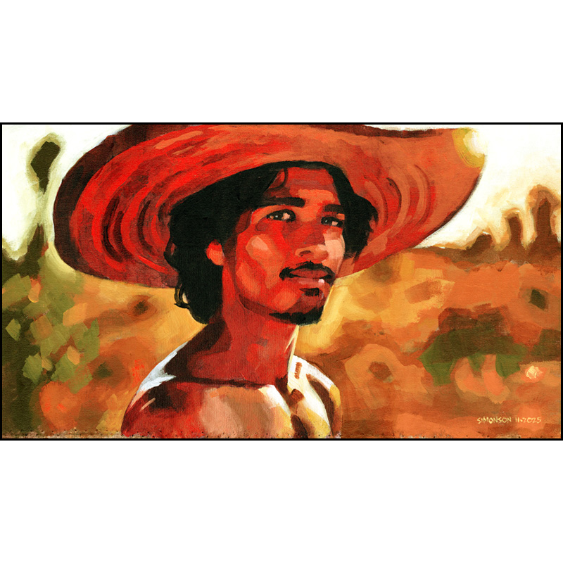 Handsome young Mexican wearing sombrero in late-afternoon light.