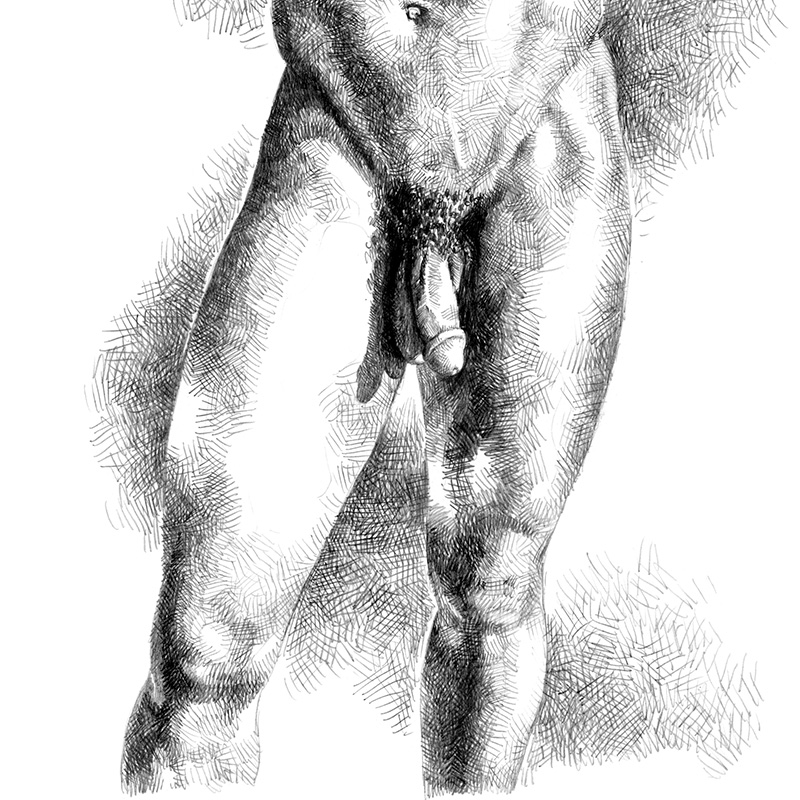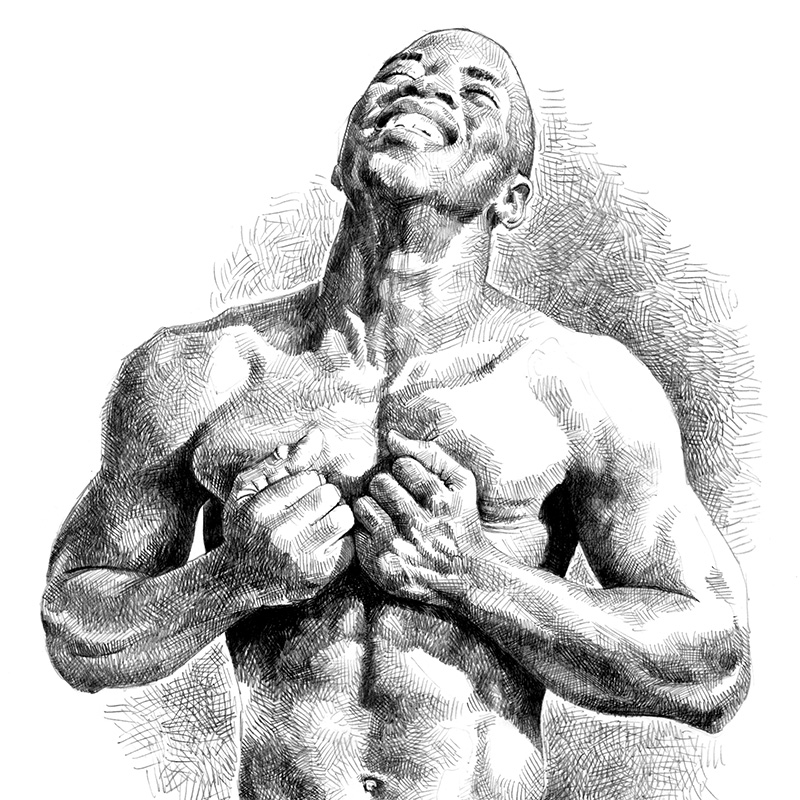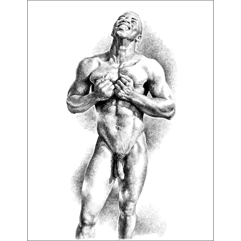 Standing frontal nude of muscular black man.