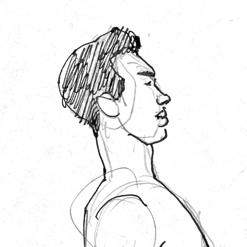 Side view, standing nude with nice posture.