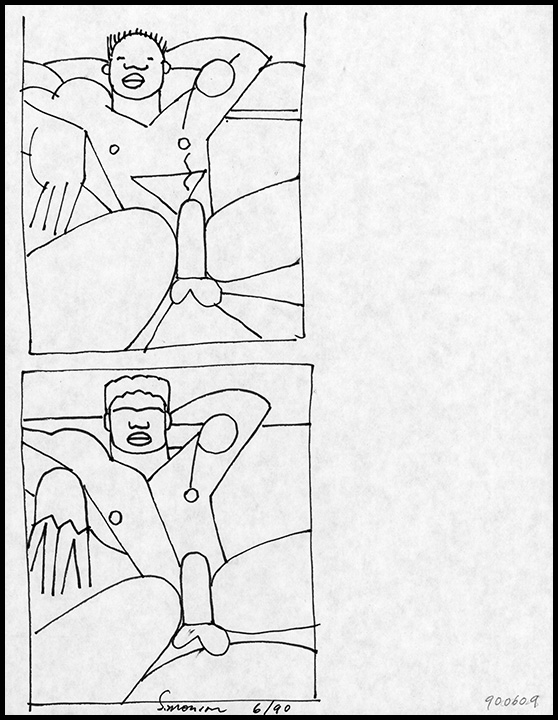 2 stylized male nudes with erections