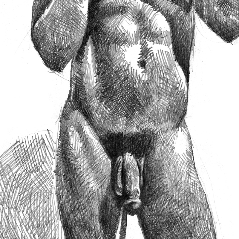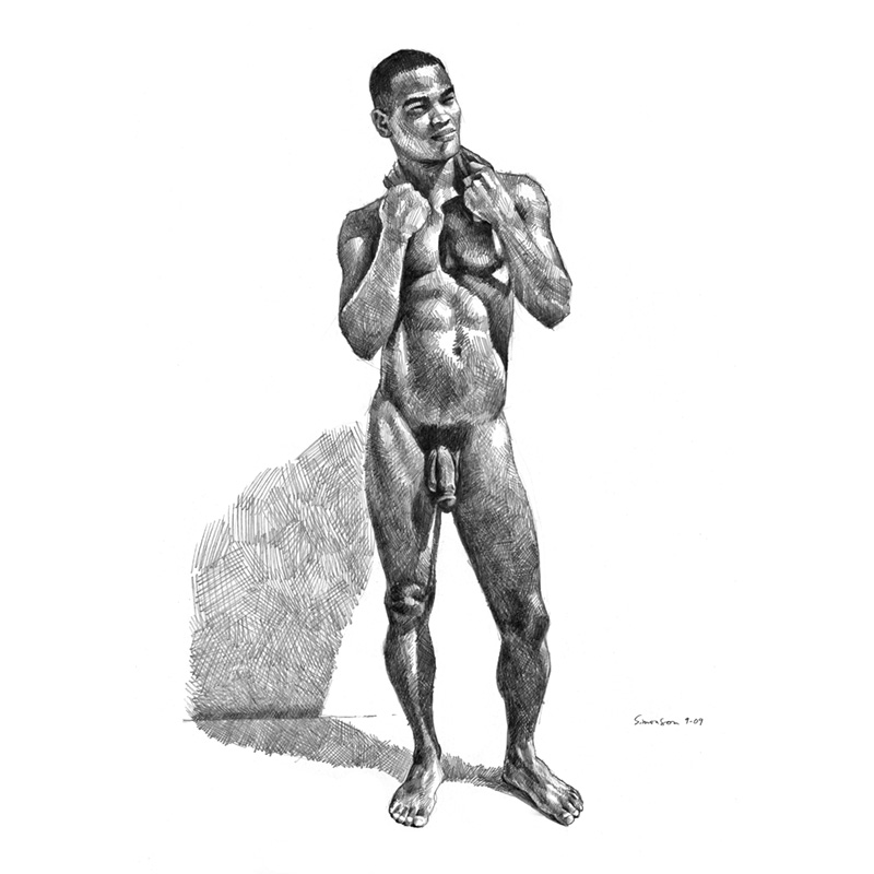 Local Asian mix male nude stands in bright sunlight.