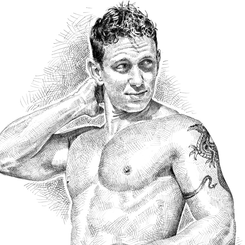 Frontal nude, standing Caucasian male.