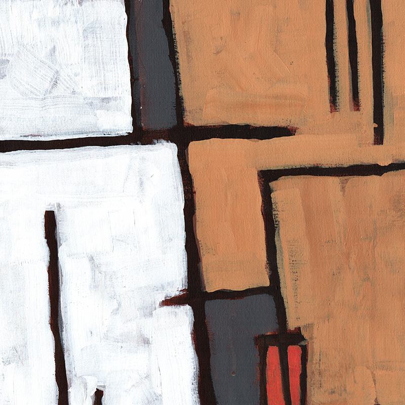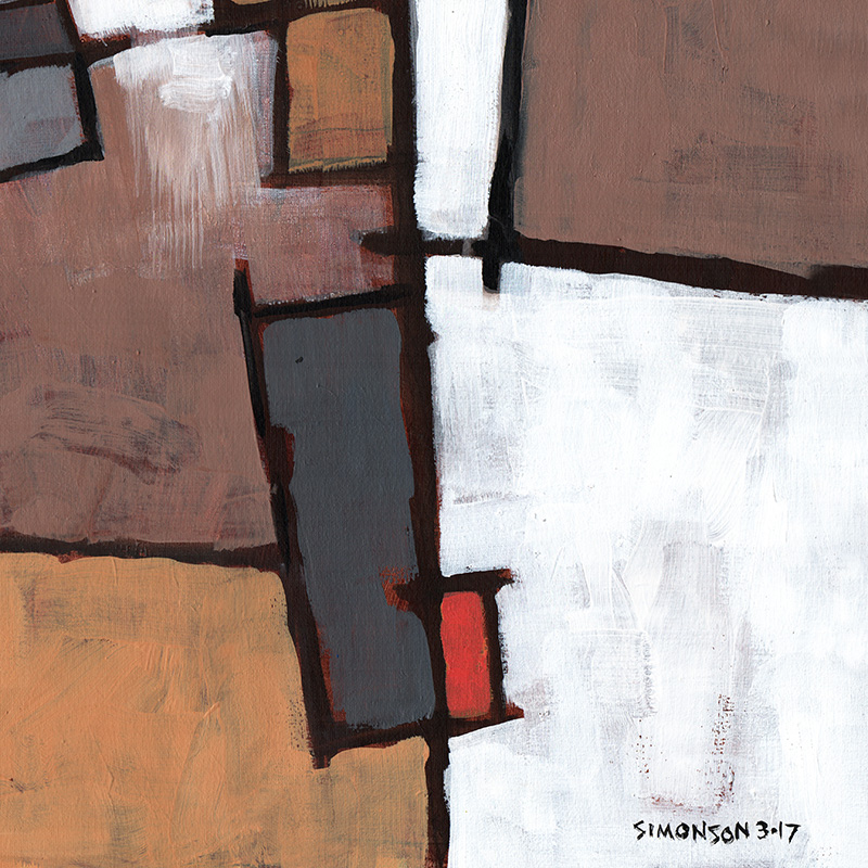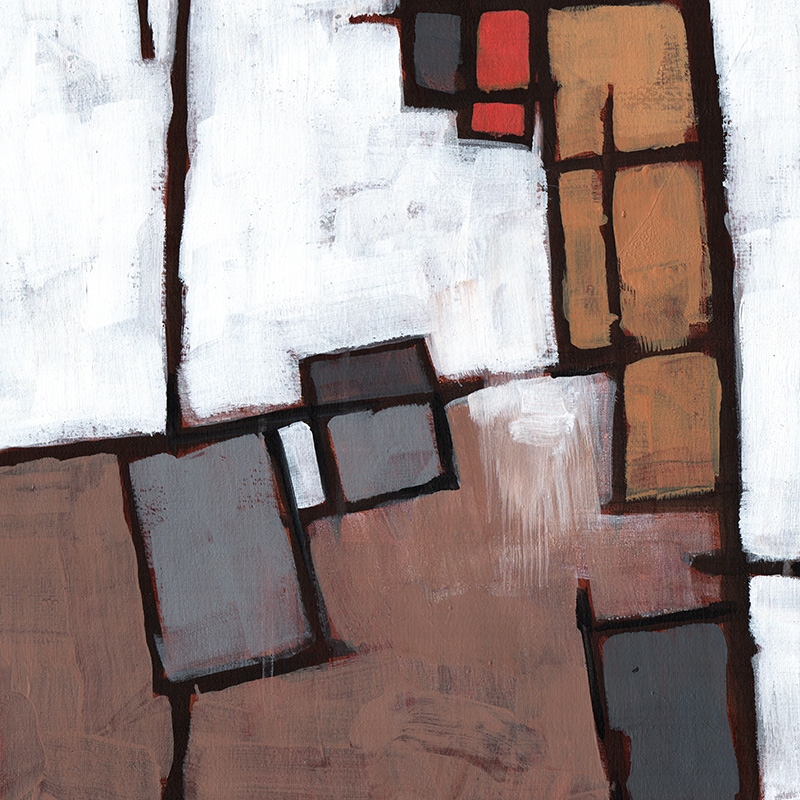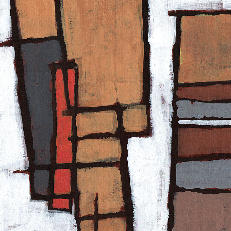 Loosely painted geometric abstract in muted earth colors.